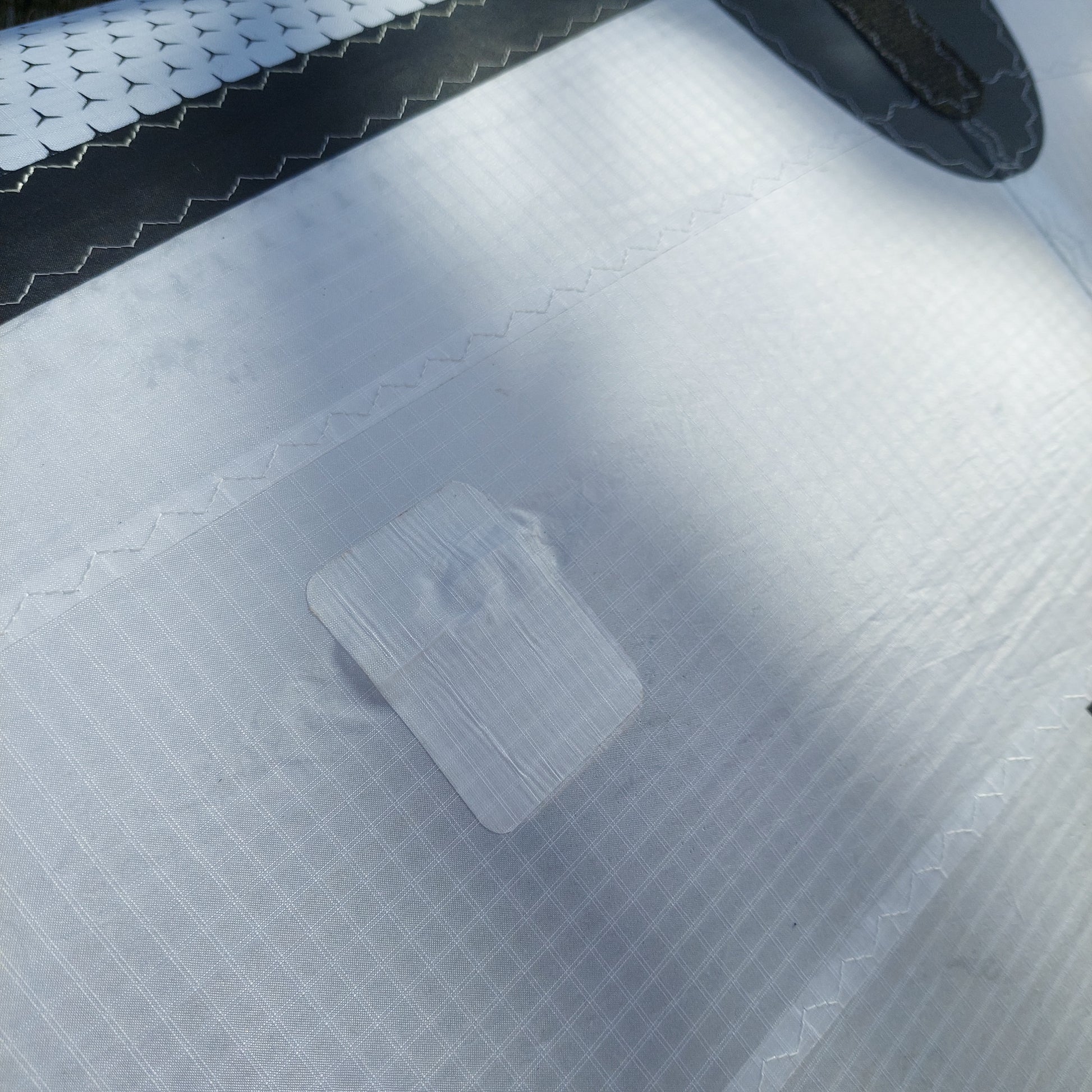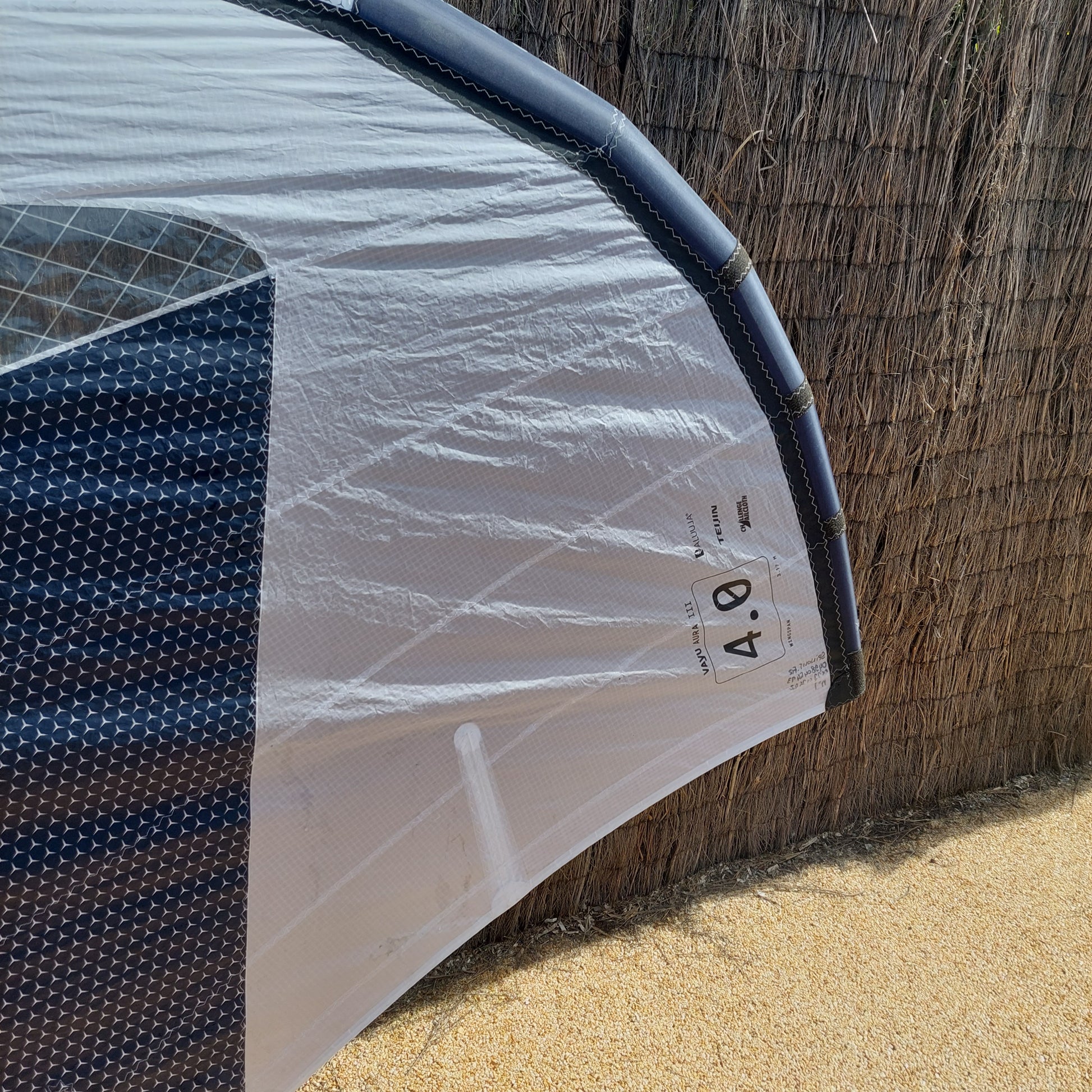 Ce modèle d’occasion 2025, en très bon état, présente un patch de réparation proprement effectué sur le spi, sans impact sur la performance ni la solidité de l’aile.